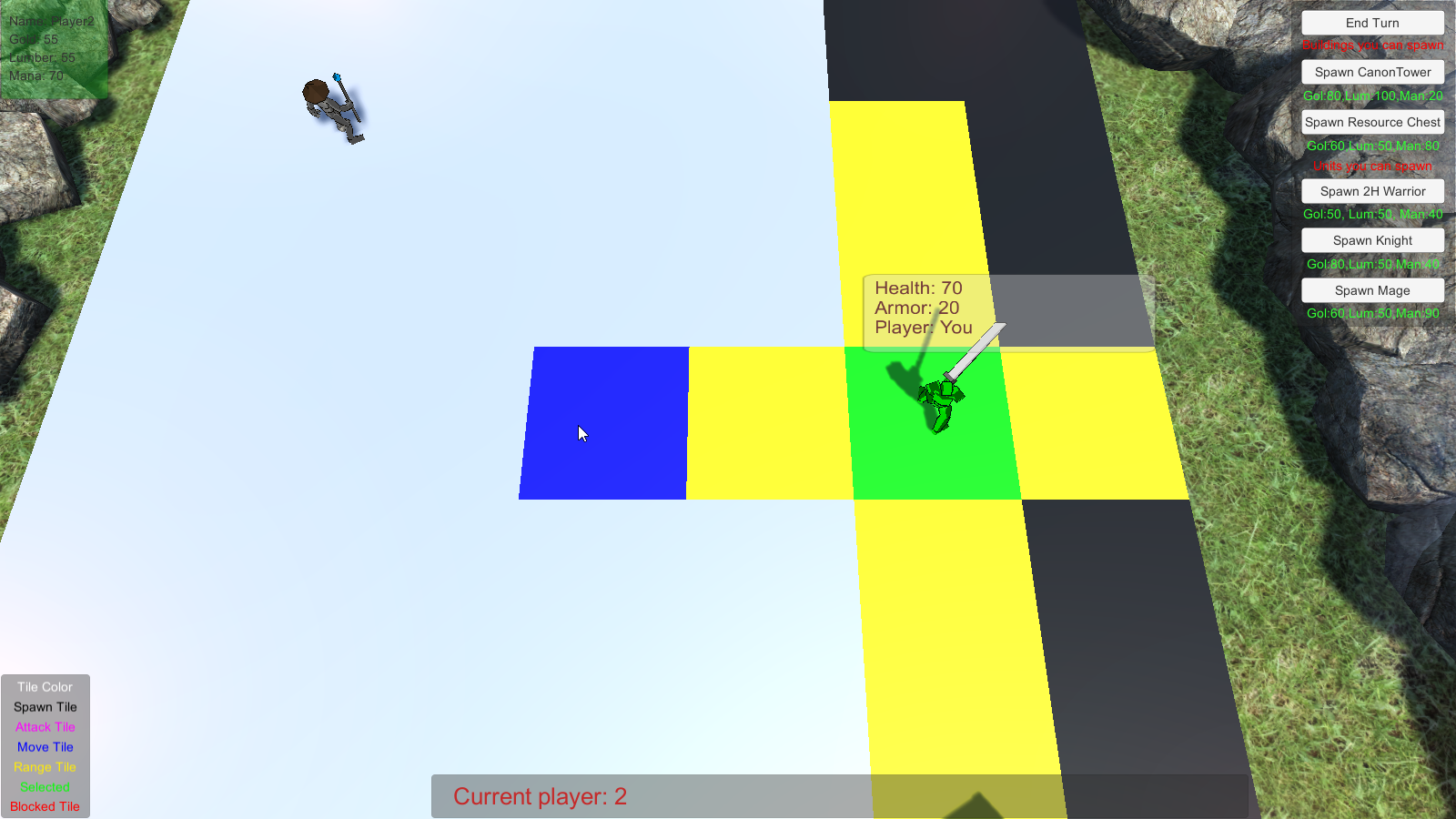 During this project, I mainly focused on making the playing field as dynamic as possible. It’s possible for me to scale the playing field in any size I want without changing the behaviour of the tiles. This makes it possible to create large scale fields/battles the players can play.