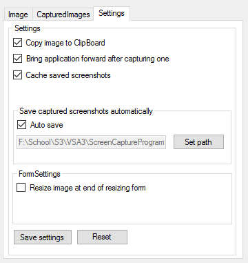 The application also had a gallery which the users could use to search for recently captured screenshots. To make this possible I made a simple binary save system which basically saved all the data to the applications local cache. Once you started the application it would automatically retrieve it’s cache and update it as you took screenshots. When the user is done with the application the application would automatically save all the remaining data to the cache.