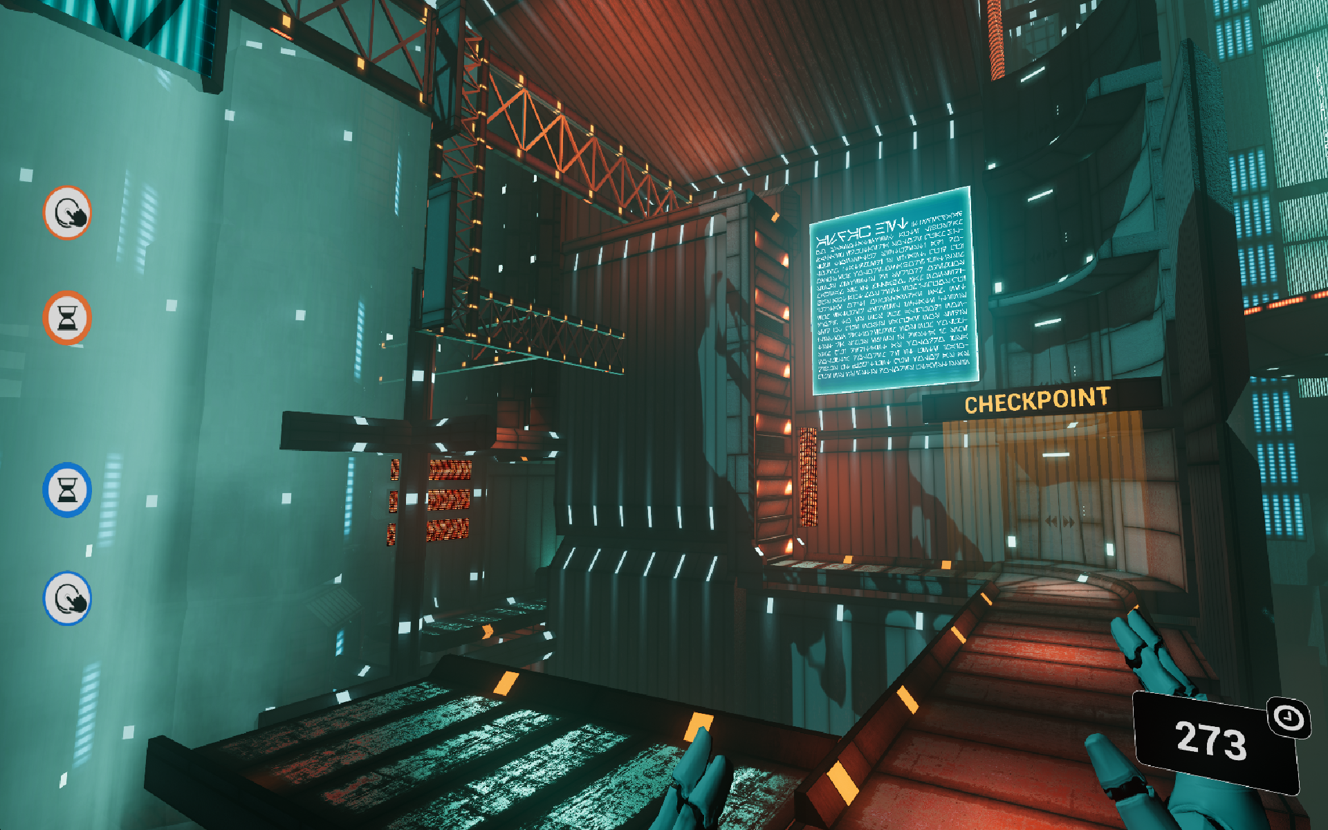 The game itself is set in a futuristic setting in which you compete with fellow runners to finish the parkour as fast as possible. Once all the runners are ready the game will automatically start and remove a force field which blocked the players from entering the parkour. During the parkour the player will face many obstacles which the player needs to traverse using climbing, running or jumping. But the player also needs to watch out for certain events which could lower gravity, make the floor wet, let the player lose the ability to climb or equalize all checkpoints.